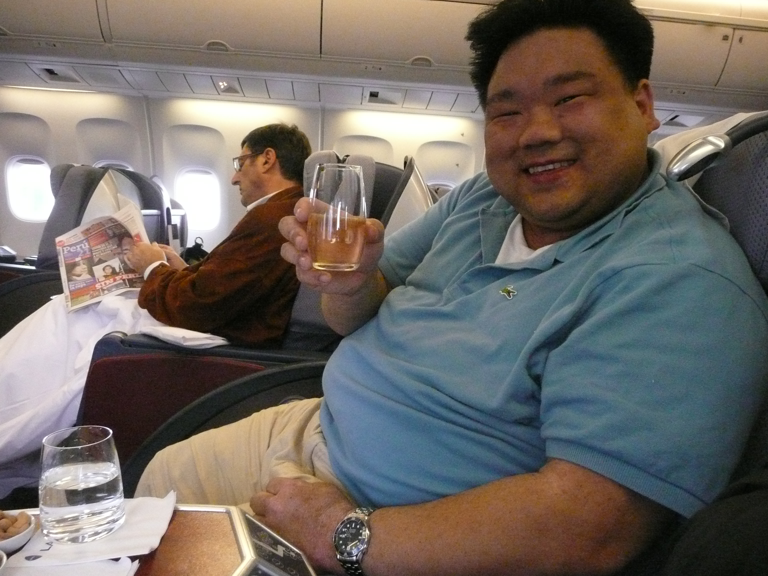 This was a flight between two of LAN’s hubs. This was a fairly memorable flight mainly because about twenty minutes into the flight I felt violently ill. I quickly rushed to the bathroom and started making the mental calculation of whether it was better to throw-up now or try not to thorw-up. What had caused my sudden onset of illness? The culprit was in fact, a cocktail that both Chile and Peru claim as their national drink, the Pisco Sour. The drink was my beverage shortly after takeoff and has a surprising amount of alcohol for a light and refreshing cocktail. Fortunately for me, after a few minutes in the bathroom, my body began to calm down from the sudden ingestion of alcohol, and I felt fine the rest of the flight. Don’t let my tale prevent you from enjoying a Pisco sour though. I happen to have an already low tolerance to alcohol and I probably drank this cocktail to fast at an altitude that already makes me even more tipsy than on the ground. Let’s just say I recommend you enjoy your Pisco Sours at sea-level.