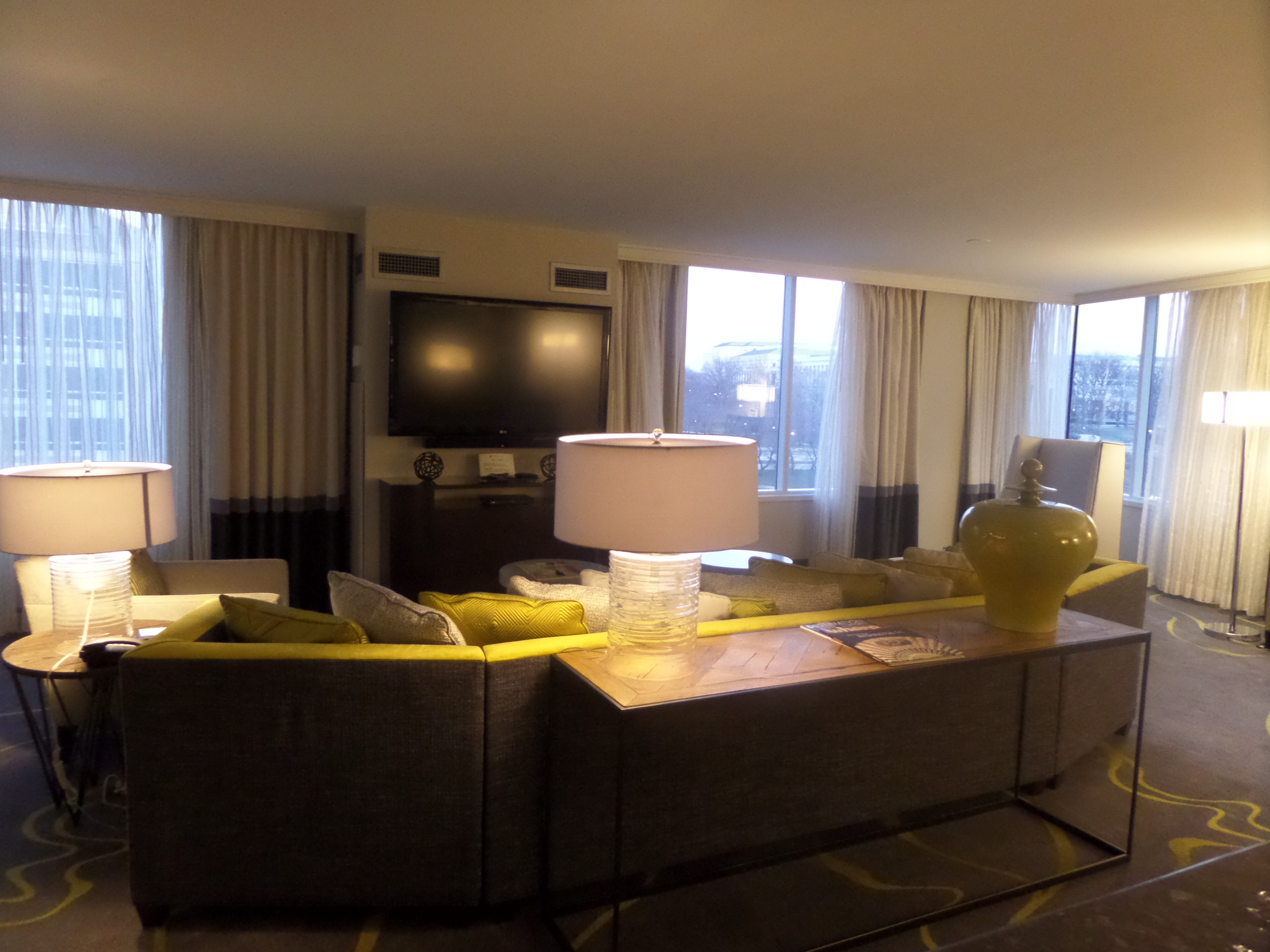 Being a corner suite there were windows with several exposure to the city and some views of office building surrounding the hotel as well as the capitol if you stand in the corner of the suite were the two sides of windows meet.