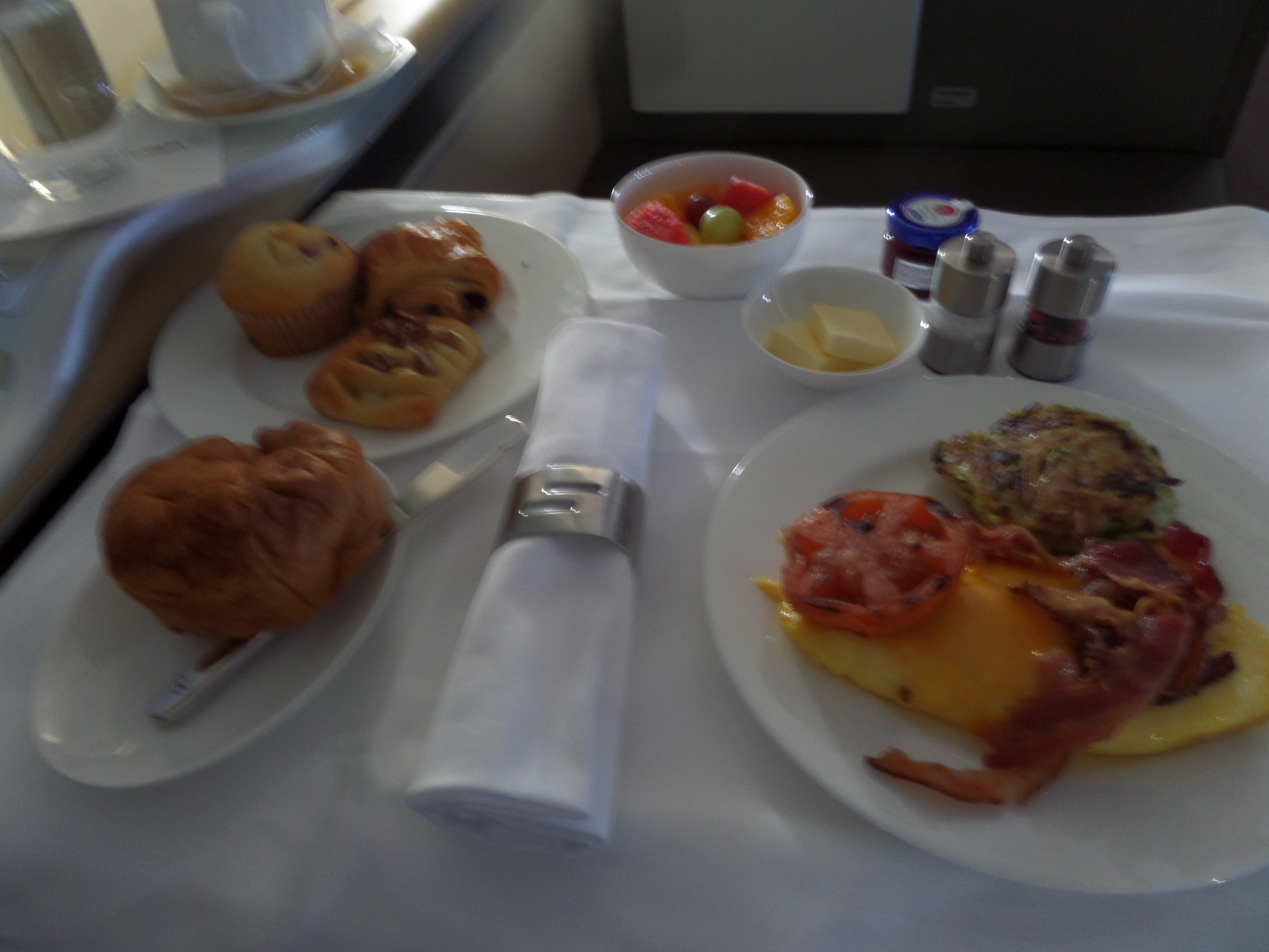 Shortly before landing I was give a towel and some Juice along with a fairly standard breakfast service with some very nice pastires.